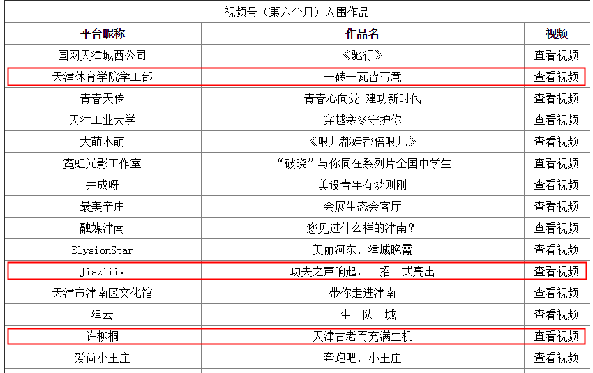 日前,“你好,天津”网络短视频大赛第六个月赛评选结果揭晓,我校党委学工部微信视频号作品《一砖一瓦皆写意》,体育文化学院学生创作的作品《功夫之声响起,一招一式亮出》(《中华力量》)、《2022快来一起打卡天津》(《爱上一座城——天津》),体育经济与管理学院、体育教育与教育科学学院学生创作的作品《天津古老而充满生机》,入围月度优秀作品。自“你好,天津”网络短视频大赛启动以来,我校作品已连续四次入围月度优秀作品。