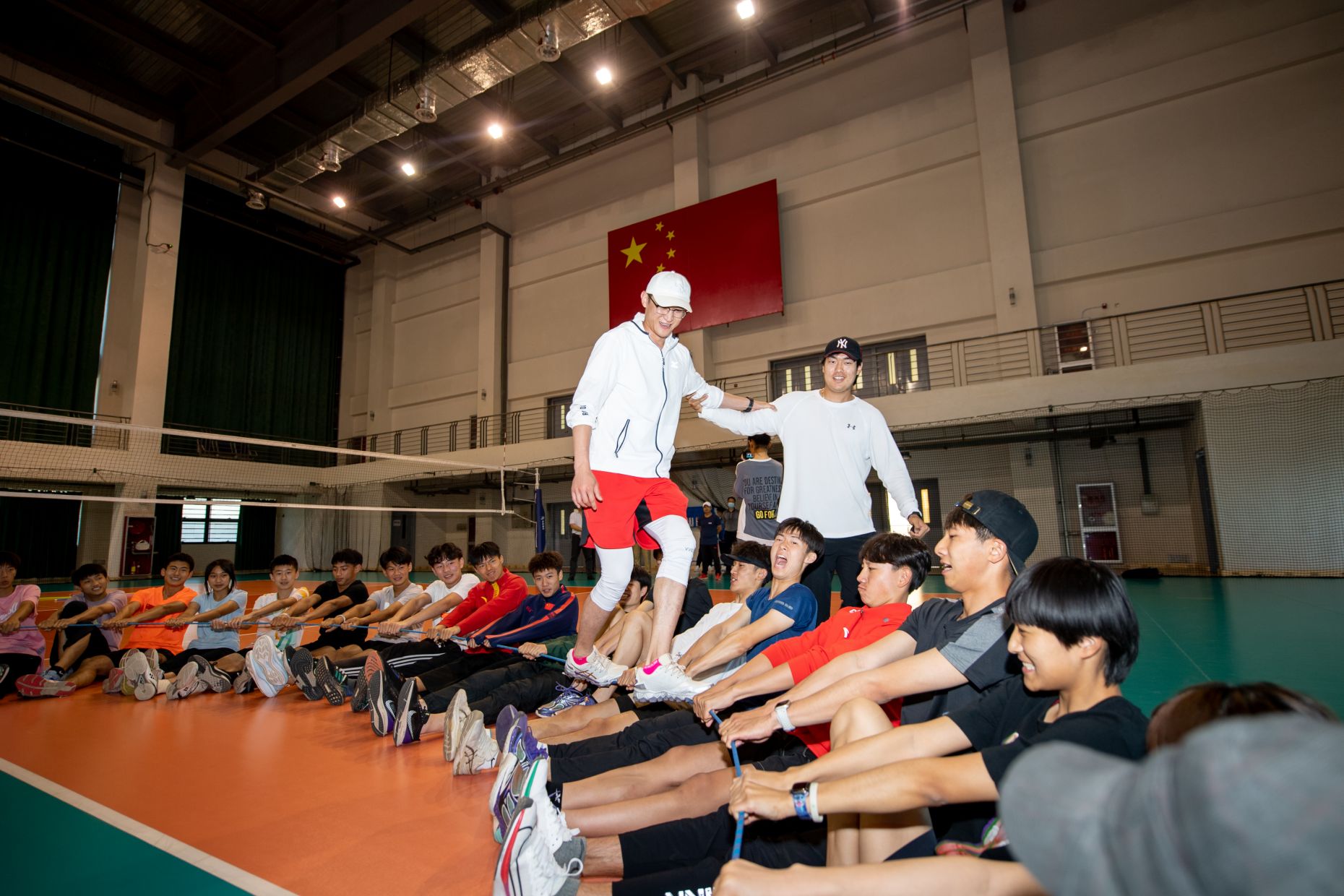 随后,我校拓展中心师生带领集训队开展了拓展活动。