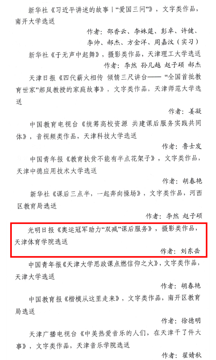 日前,市教育两委公布了2021年天津市“十大教育新闻作品”评选结果,经过自主申报、专家评审、网上公示等环节,我校报送的《奥运冠军助力“双减”课后服务》(摄影类作品)成功入选。这是我校连续两年获此荣誉。