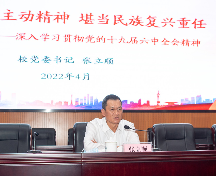 张立顺希望我校大学生,深入学习领会党的十九届六中全会精神,从党的百年奋斗历程中汲取放飞梦想的智慧和力量,不负大好年华,迈出坚实步伐,做出正确选择,肩负时代赋予的使命担当,奏响新时代青年大学生的最强音,为实现中华民族伟大复兴的中国梦不懈奋斗。