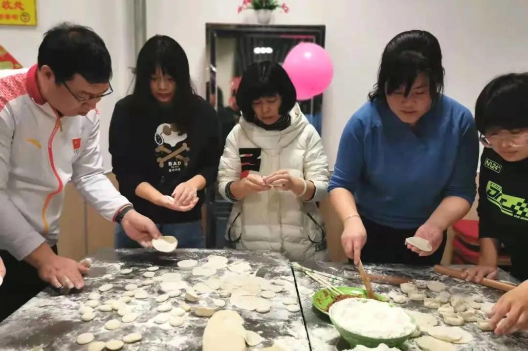 2022年1月31日(农历除夕),学校食堂二楼清真餐厅喜气洋洋。党委副书记、院长吉承恕,党委学工部部长张锋、运动训练科学学院党委副书记郝建华、社会体育与健康科学学院党委副书记杨玉、体育教育与教育科学学院副院长戚克敏,相关学院辅导员、学工干部、院办干部和全体留校学生一起包饺子、共进年夜饭,欢度除夕。