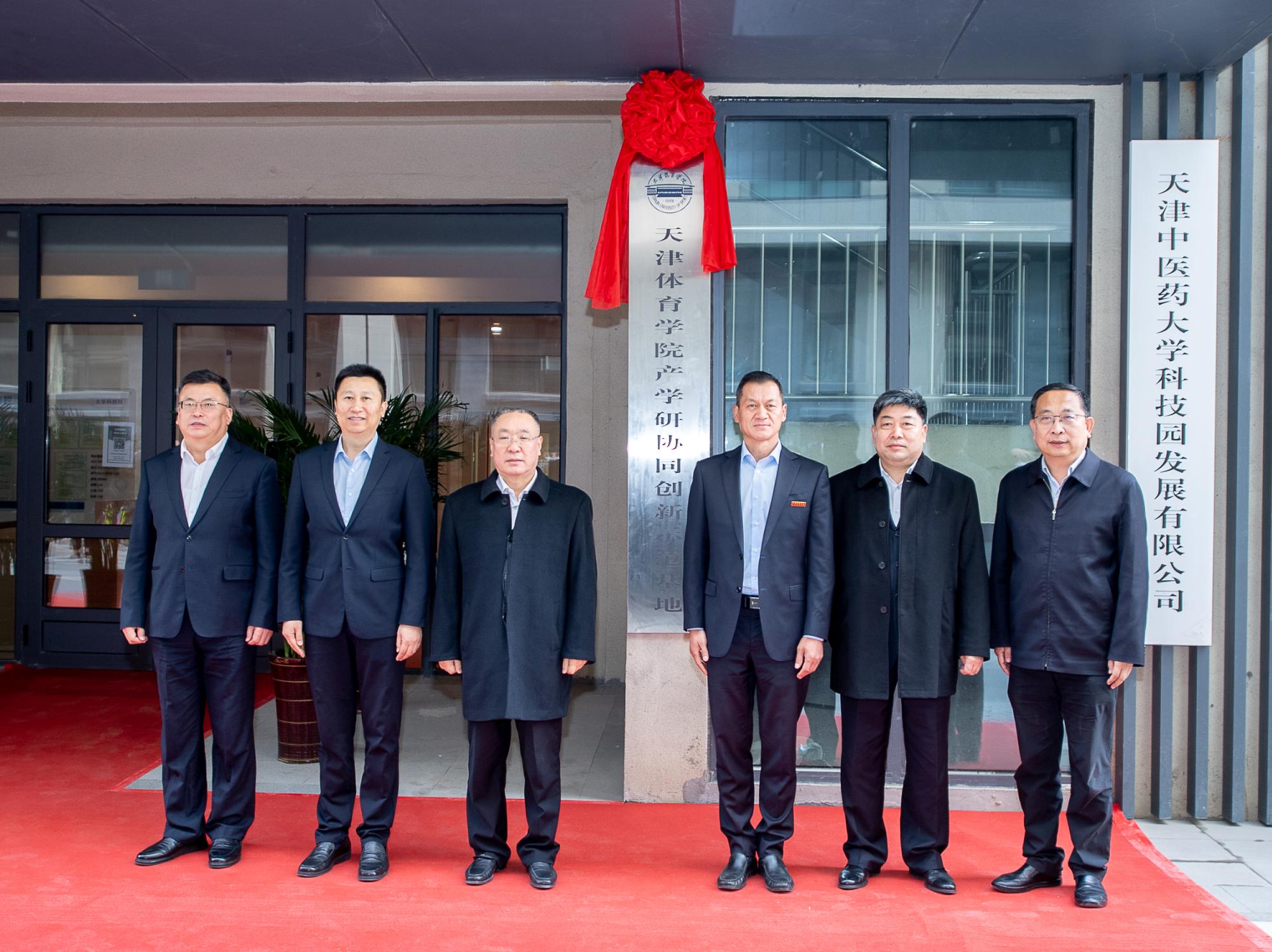 12月9日下午,天津体育学院入驻天津健康产业国际合作示范区大学科技园揭牌暨合作签约仪式举行。静海区委书记刘春雷、天津体育学院党委书记张立顺、天津中医药大学资产经营公司董事长孟昭鹏出席,并为天津体育学院产学研协同创新示范基地揭牌。静海区人大常委会副主任、合作示范区管委会党委书记高文智,副区长赵春兴出席。天津泰达洁净材料有限公司副总经理廖月娴、羽彤智能科技有限公司董事长孙羽以及天津中医药大学科技园发展有限公司负责同志,天津体育学院办公室、科研与研究生处、运动健康学院、体育经济与管理学院、竞技运动学院(竞技体育学校)负责同志及相关项目组负责人代表参加,揭牌暨合作签约仪式由天津体育学院党委副书记、院长张欣主持。