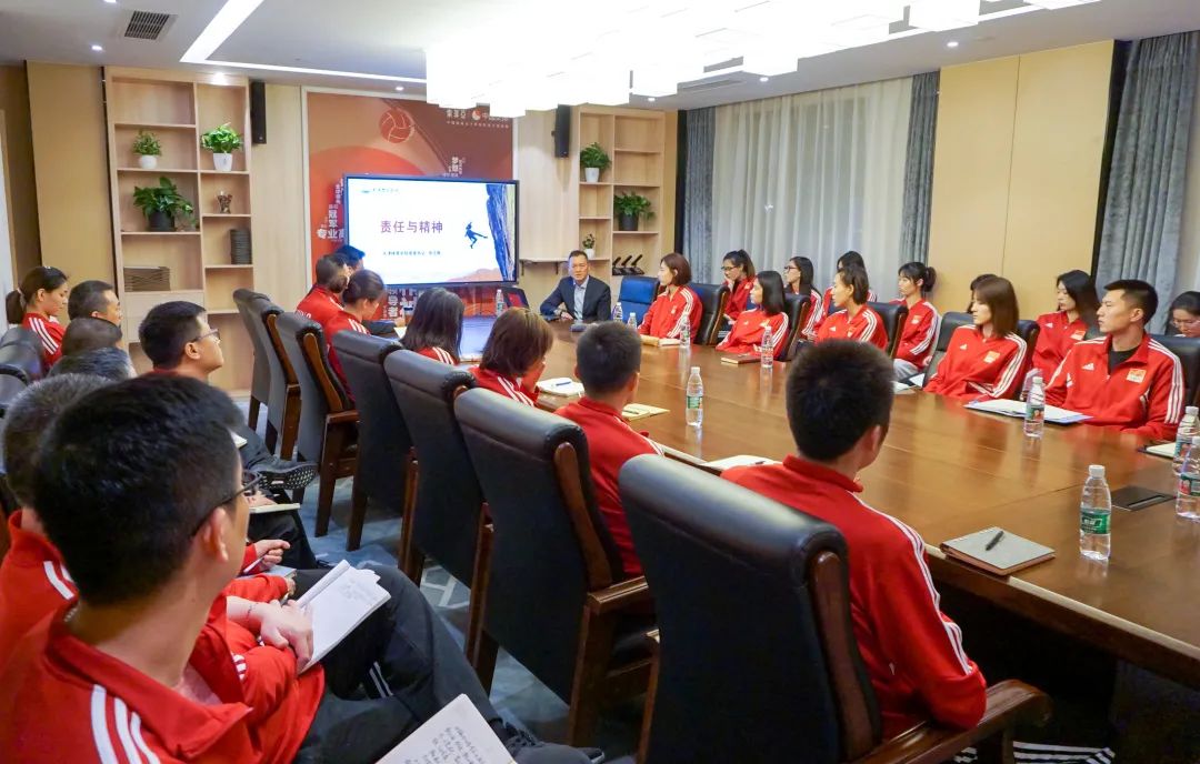 张立顺讲到,“祖国至上、团结协作、顽强拼搏、永不言败”的新时代女排精神是中国共产党人精神谱系的重要组成部分,是中华民族的宝贵精神财富。国家队每名成员都要从习近平总书记系列重要讲话中汲取政治伟力、思想伟力和实践伟力,既要坚定政治立场,也要厚植家国情怀;既要培养创新思维,也要具备宽广视野;既要坚持严格自律,也要传承优良作风。此次培训将理论与实际案例相结合,深入浅出,生动形象,具有很强的亲和力、感染力和针对性。
