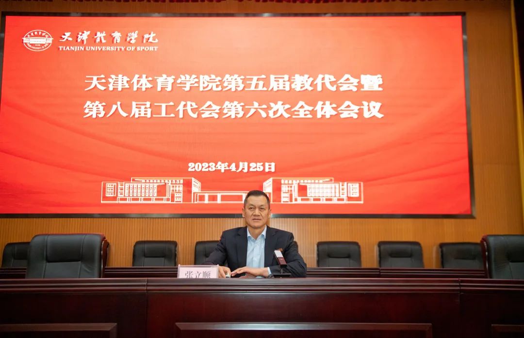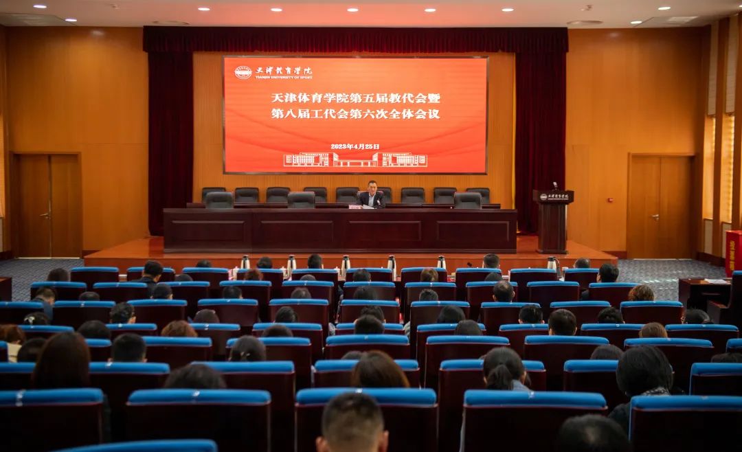 天津体育学院第五届教职工代表大会暨第八届工会会员代表大会第六次会议,于2023年4月25日在行政楼报告厅举行。全体处级以上干部、学校工会和教代会代表参加会议。会议由党委副书记宋爱军主持。