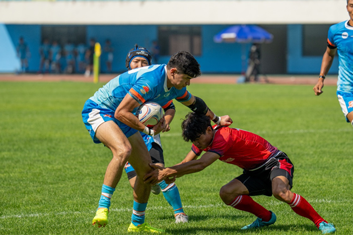 在第一天的小组赛中,我校橄榄球队分别以52:0,29:5、15:7的绝对优势,战胜河北文鹰队、华南师范大学、江苏队,顺利进入半决赛。半决赛中,我校运动员乘胜追击,发挥优势,分别以33:14,24:17大比分战胜内蒙古队与重庆队。最终,我校橄榄球队力克所有对手,夺得2023年全国英式7人制橄榄球系列积分赛迁安站冠军。