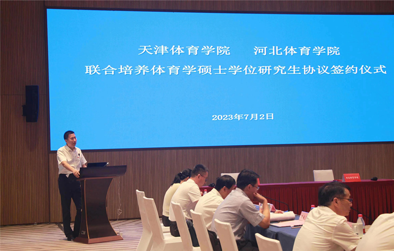 在签约仪式上,河北体育学院党委书记孙远富介绍了河北体育学院在人才培养、竞技体育、全民健身等相关工作情况,并对天津体育学院的办学成绩给予了高度赞扬。他希望今后两校合作能大力推动河北体育学院办学水平和研究生教育水平步入新台阶,为国家和区域经济社会发展提供有力人才支撑。张欣在致辞中回顾了天津体育学院和河北体育学院多年合作交往的经历。他指出,此次两校签订合作协议是深入贯彻落实习近平总书记在深入推进京津冀协同发展座谈会上的重要讲话精神的生动体现,是落实好立德树人根本任务的应有之义。他希望两校能以此次合作为契机,不断深化更高层次、更宽领域的战略合作,更好推动京津冀三地体育院校的合作交流走深走实,努力在教育强国、体育强国战略中不断建功立业。