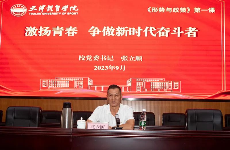 9月19日,校党委书记张立顺为2023级本科新生讲授题为“激扬青春,争做新时代奋斗者”的形势与政策第一课。