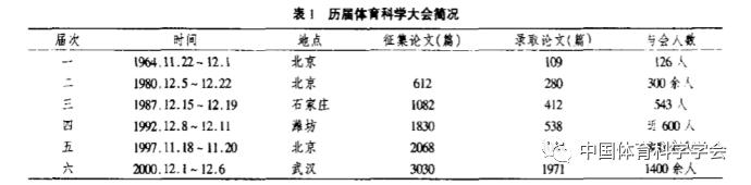 中国体育科学学会第五届全国会员代表大会暨第六届全国体育科学大会于2000年12月1日至6日在武汉体育学院举行。这是新中国历史上规模最大的综合性体育学术成果报告和交流会,被誉为“体育科技全运会”。此届大会再次刷新此前体育科学大会与会人数和录取论文数量。大会的主题为“创新,协作,服务实践”。