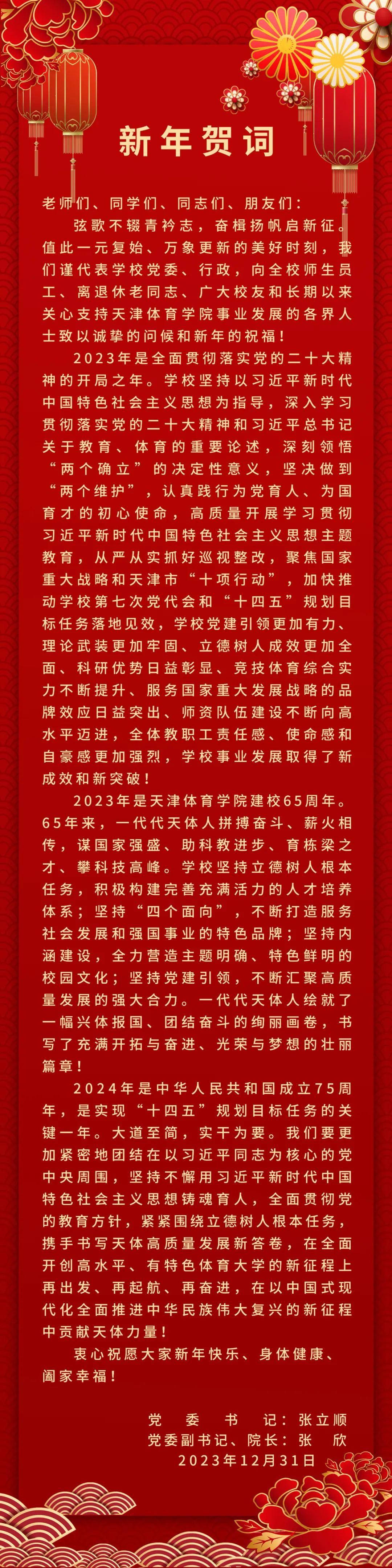 我校举行“一路繁花踏歌行”庆祝天津体育学院建校65周年暨2024年元旦晚会