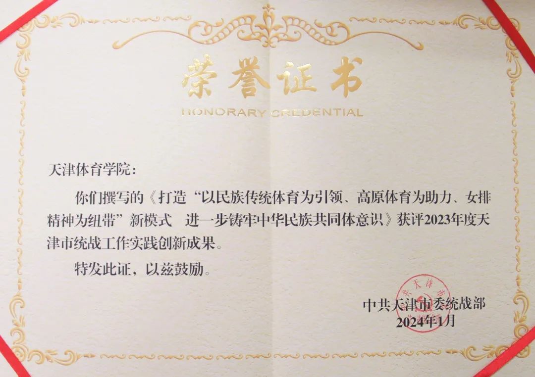 学校党委始终高度重视统战理论与实践创新研究工作。过去一年,我校二级单位党组织广泛宣传,教职工积极参与、精心选题,有组织开展统战理论政策与实践工作研究创新,共申报成果10项。其中,由党委统战部撰写的《打造“以民族传统体育为引领、高原体育为助力、女排精神为纽带”新模式 进一步铸牢中华民族共同体意识》获评天津市统战工作实践创新成果。