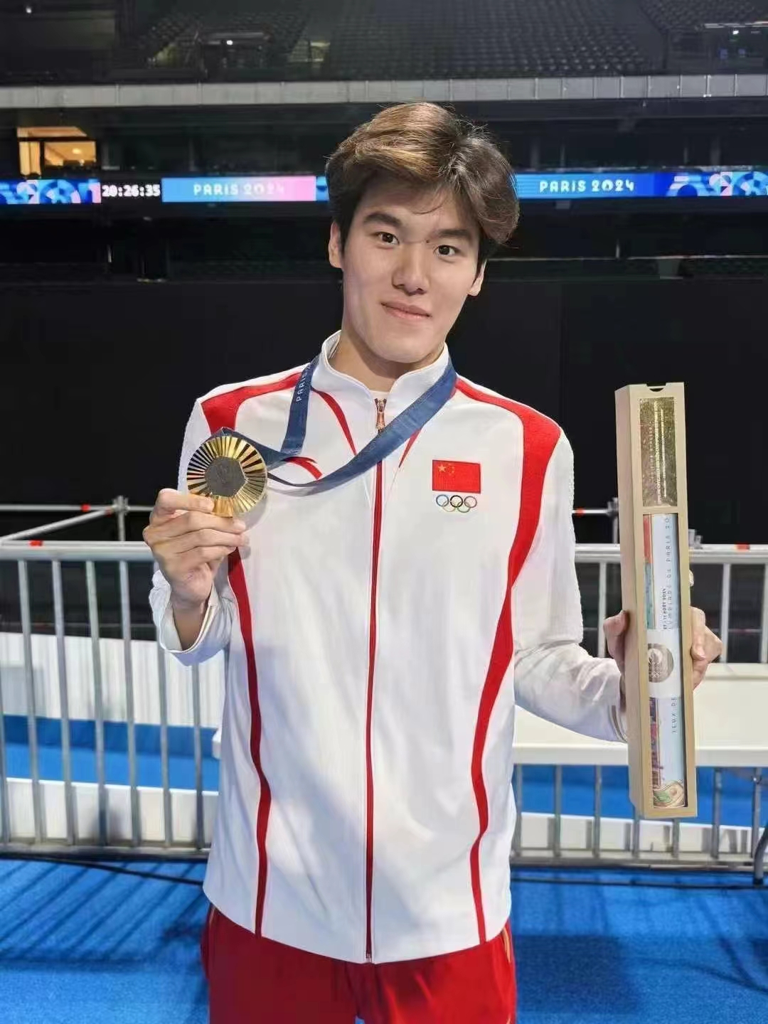 本届巴黎奥运会,王长浩参加了男子4×100米混合泳接力的预赛,并在与队友的配合下,圆了奥运金牌梦,也为天津拿下了本届巴黎奥运会的首枚金牌。在赛场上展现出了天体学子的精彩风貌,为国家为天津为学校争得荣誉。