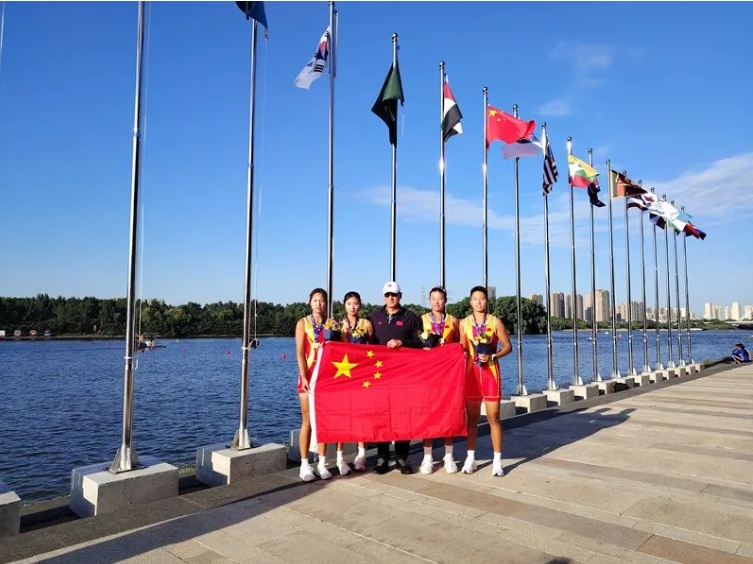 2024年亚洲赛艇青年锦标赛于9月11-14日在中国沈阳举行,共有来自中国、日本、韩国、朝鲜、泰国、乌兹别克斯坦等19个国家和地区的青年赛艇队伍参赛。经过激烈角逐,我校学子孙艺心、葛一潞荣获女子四人单桨金牌。