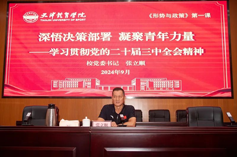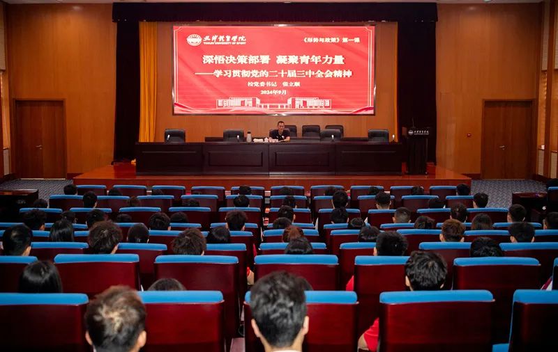9月20日,校党委书记张立顺为我校本科生代表讲授题为“深悟决策部署 凝聚青年力量”的形势与政策第一课,宣讲党的二十届三中全会精神,勉励学生坚定马克思主义信仰、中国特色社会主义信念、中华民族伟大复兴信心,立报国强国大志向、做挺膺担当奋斗者。