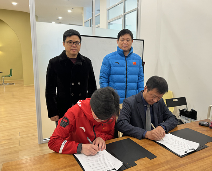 11月25日,武术与民族传统体育学院与天津锐博运动科技有限公司签署本科教学实习实践基地协议,并举行本科生教育实践基地揭牌仪式。仪式上,天津体育学院武术与与民族传统体育学院党总支书记、院长丁保玉教授和天津锐博运动科技有限公司董事长杨丹伟女士签署协议书,国际武术联合会裁判委员会主席、中国武术协会副主席、天津武术协会主席、天津理工大学苏长来教授,天津武术协会裁判委员会主任、天津大学法学院特聘教授、天津理工大学高水平运动队主教练徐彩桐教授,我校武术与民族传统体育学院副院长郝大伟副教授、教研室主任及双方相关负责人参加。