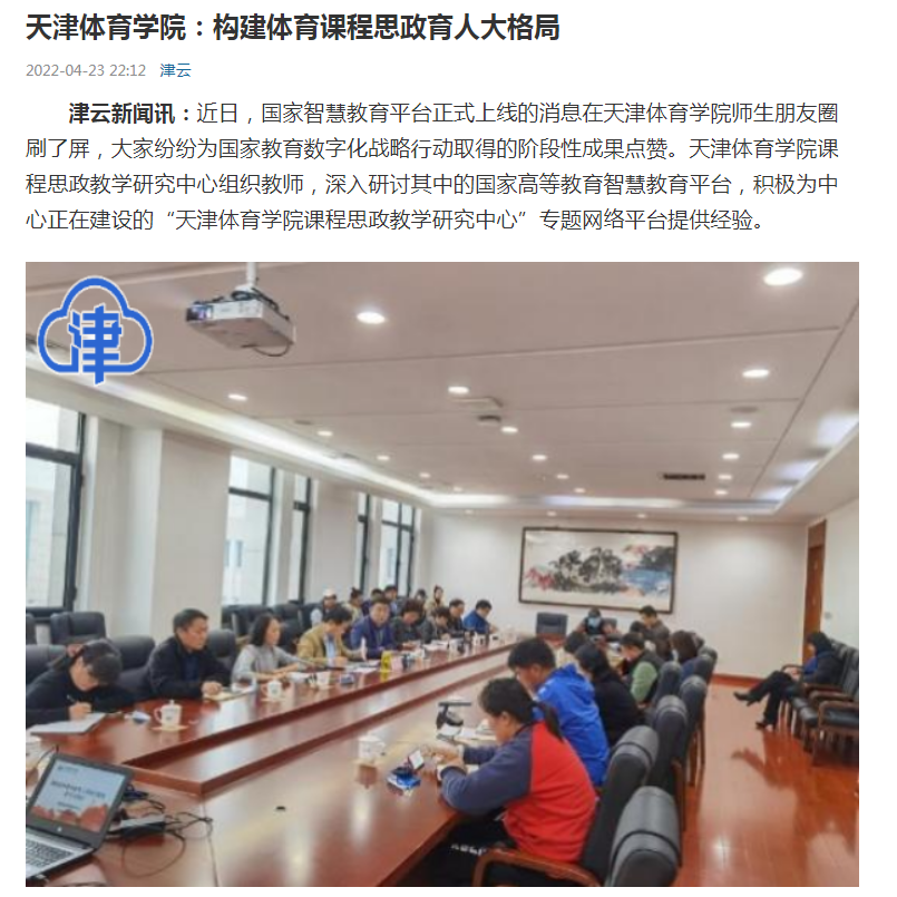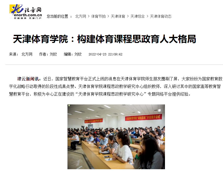 日前,津云、北方网、天津网络广播电视台等我市主要媒体报道我校全面推进课程思政建设,构建体育课程思政育人大格局。