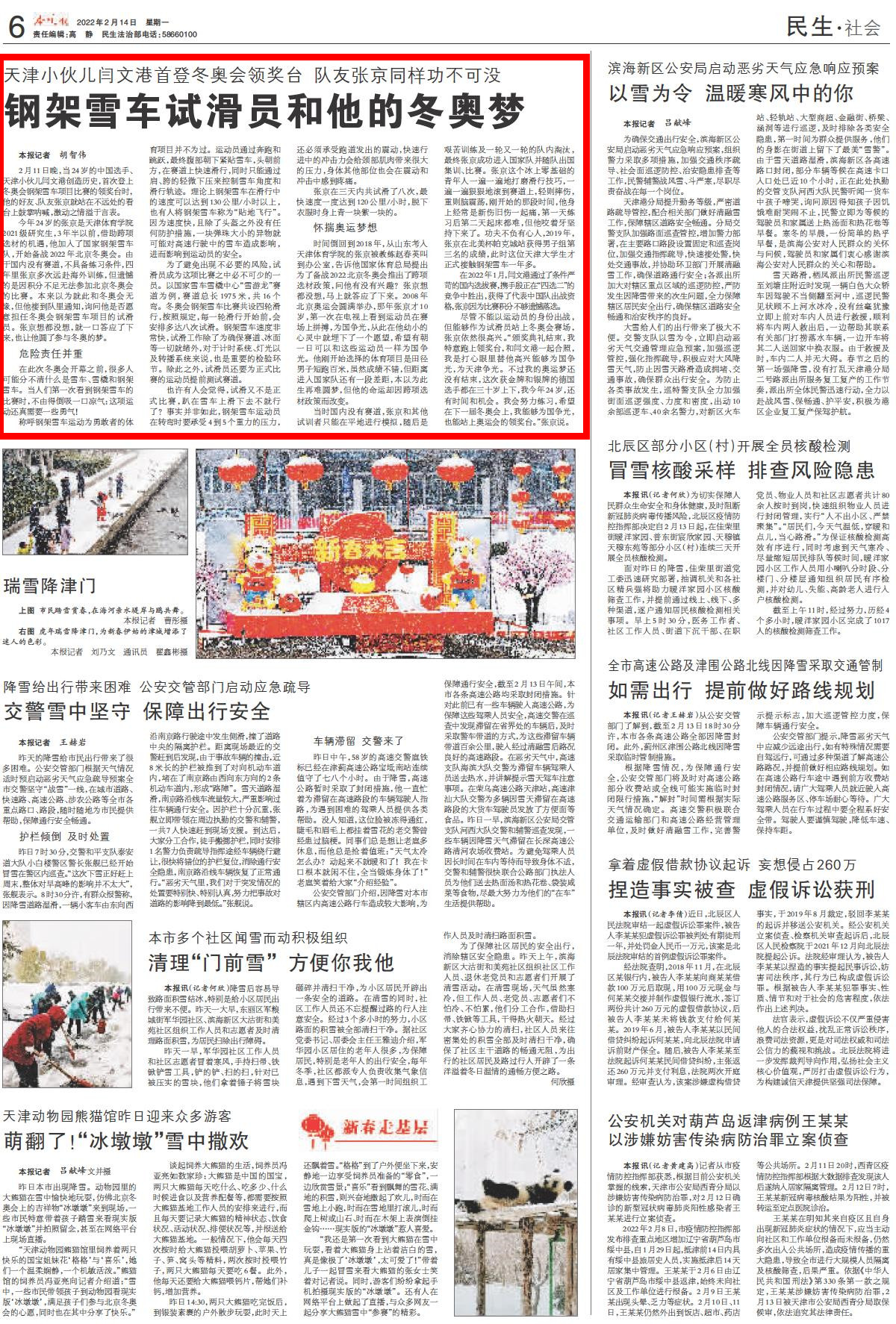 2022年2月14日,《今晚报》报道我校学子张京追逐冬奥梦想,助力中国钢架雪车队创造历史。现全文转载。