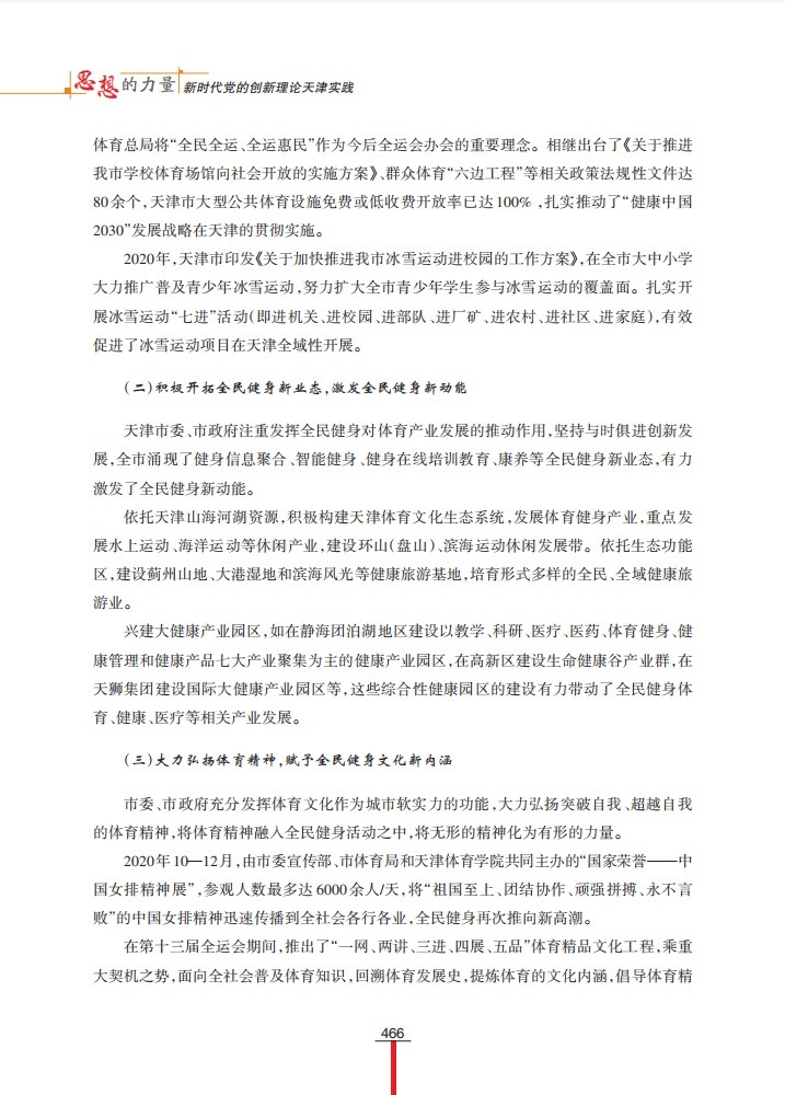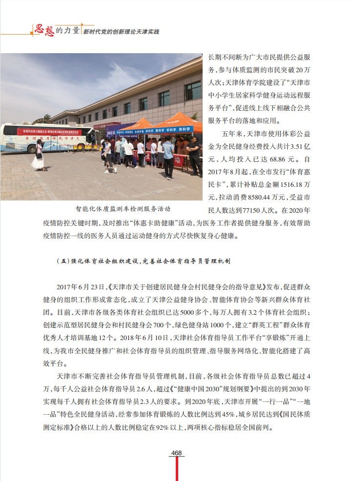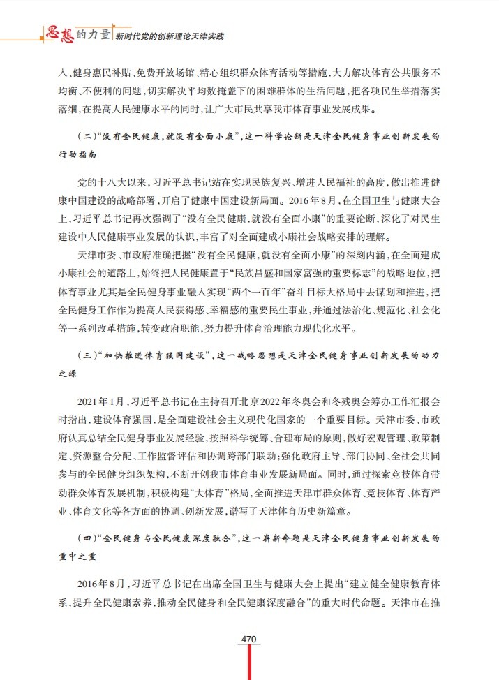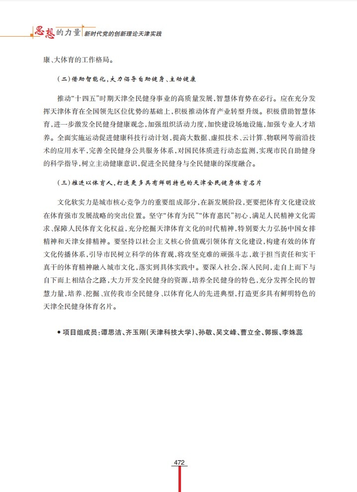 1月6日,“学习强国”天津学习平台以“坚持体育为民 发展全民健身事业”为题,刊发我校谭思洁教授课题组调研成果。该调研成果为天津市社科联“千名学者服务基层”活动入选项目,收入《思想的力量——新时代党的创新理论天津实践》一书。