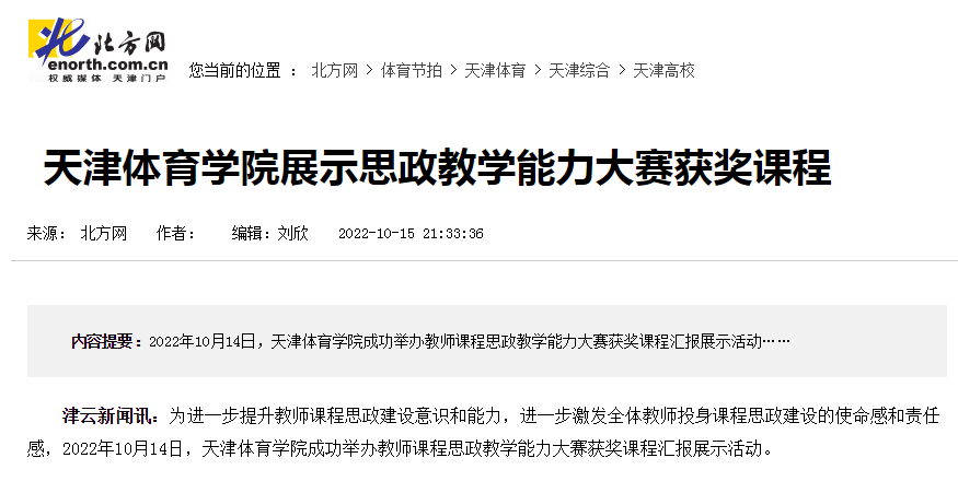 媒体看天体 | 北方网、津云报道我校举办教师课程思政教学能力大赛获奖课程汇报展示活动