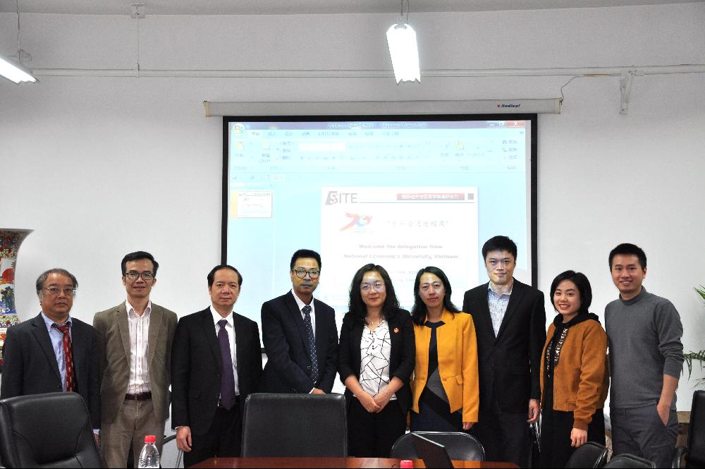 2019年10月18日下午,在学校70周年校庆之际,越南国民大学代表团访问我院,并就国际直接投资相关议题进行了调研。越南国民大学代表团有研究生院院长Le Trung Thanh教授,经济系系主任Ho Dinh Bao教授、Vu Kim Dung教授、Nguyen Phuc Hai博士,和产业预测与企业发展系主任Tran Toan Thang博士等。学院副院长李瑞琴教授,国际贸易系系主任张艳副教授、刘悦博士,国际合作办公室闫倩楠老师,和国际贸易全英文博士项目的Dinh Viet Hoang博士生参加了会见。