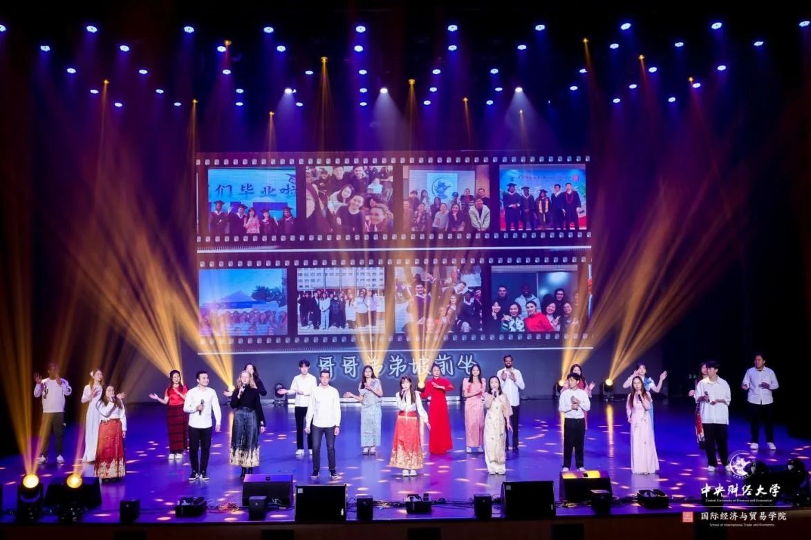 歌舞渐息,欢笑不减;灯光渐灭,温暖不消。美好的时光总是如此短暂,随着联欢会的圆满落幕,学院师生们在欢声笑语中共同体验了一场意义非凡的“融合式育人”盛会。联欢会和颁奖典礼不仅是学院以立德树人的成效展示和对过去一年优秀学子的表彰,也是学院以学生为本、想社会之所需,增进师生、校地、校企、校校相互间融通互促的鲜活育人范式。师生享受的不仅是一场文艺盛宴,更是国贸文化饕餮,也为新的一年积聚了信心与力量。校内师生、校外企业嘉宾,以及校友代表、学生家长代表、党支部共建单位师生笑语盈盈,与联欢会和颁奖典礼交相辉映,共同绘制了家校社协同育人新篇章。