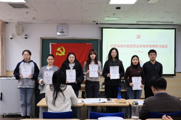 会议现场举行了第三届红贸启航功能型党支部先锋导师聘书颁发仪式,与会老师为先锋导师颁发了聘书。