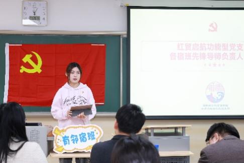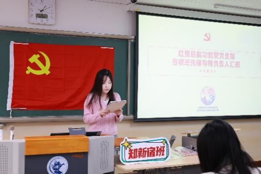 红贸启航功能型党支部各宿班先锋导师负责人依次作阶段性工作汇报。各宿班先锋导师通过线上线下多形式交流实现新生帮扶的积极成效,同时针对现存问题提出精准对接需求、创新活动载体、加强联动协作等改进计划。