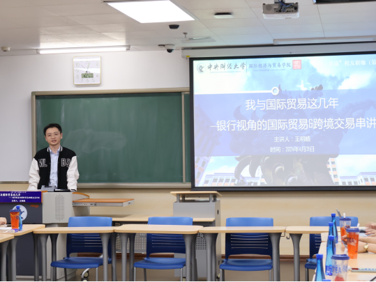 学院积极为校友们提供回母校欢聚交流的平台,以加深校友对母校的情感纽带,激发校友的归属感和荣誉感,进一步传承和弘扬学院的文化精神。中色国际贸易有限公司副总经理、2000级国际经济与贸易专业本科生李明作为优秀校友代表在国际经济与贸易学院2024年毕业典礼暨学位授予仪式上发言,向毕业生们送上了最诚挚的祝贺与祝福。中央财经大学会计学院助理教授、中澳2008级于晓旭代表校友出席2024 级中澳合作本科教育项目开学典礼并发言,与在校生亲切互动交流,发挥了良好的朋辈引领作用,激励在校生同心同行,奋进向上。华泰联合证券有限责任公司债券销售部负责人、2001级国际经济与贸易专业本科生王艳出席学院2024级新生开学典礼并发言,祝愿同学们以青春之姿砥砺奋进,谱写自己人生的华章。在“2025迎新年・师生融乐联欢会暨‘贸贸之星’颁奖典礼”中,中澳2019级校友杜扬作为主持人之一,返校与全院师生共迎新年。