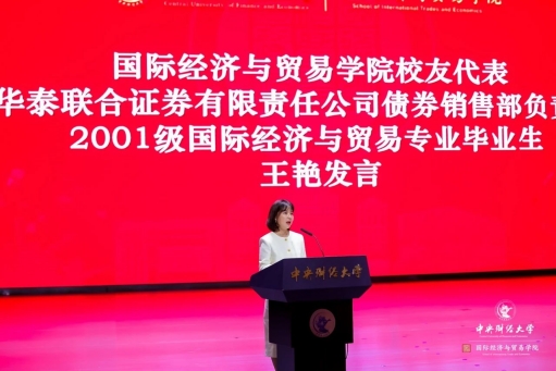国际经济与贸易学院2024级新生开学典礼:华泰联合证券有限责任公司债券销售部负责人、2001级国际经济与贸易专业本科生王艳发言