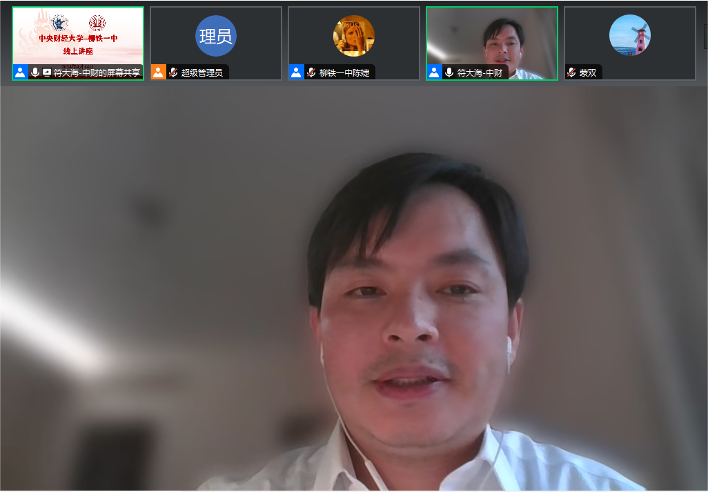 4月14日,学院和广西柳州铁一中学联合举办线上讲座,符大海副教授为学生作了题为《 “一带一路”这十年》的专题讲座。讲座全面回顾了“一带一路”倡议自提出以来的发展历程、取得的建设成就,并对其未来发展进行深入探讨。在讲座中,符老师详细阐述了“一带一路”倡议的缘起,介绍了“一带一路”倡议的国际标准化译法、共建原则、合作框架以及十年建设取得的巨大成就,特别是在政策沟通、设施联通、贸易畅通、资金融通和民心相通等方面的具体成果。符老师还分享了中央财经大学国际经济与贸易学院在“一带一路”研究领域的学术贡献和未来发展方向。最后,符老师介绍了中央财经大学的基本情况、办学特色以及近年来在广西的招生情况。本次讲座不仅让学生们获得了关于“一带一路”倡议的丰富知识,同时也对中央财经大学的学科专业情况有了更直观的认识,有效提升了中央财经大学在潜在学生心中的形象,增强了学校品牌的吸引力。