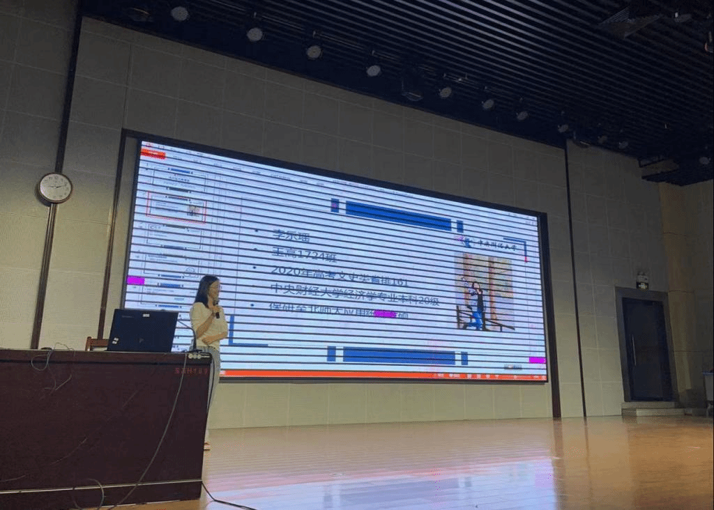 随后,招生团队在阶梯教室开展招生宣讲。秦伊伦老师从历史背景、学科实力、人才培养、就业前景和校园环境等方面介绍展现中央财经大学,引起热烈反响,不少学生表现出对学校优势学科的浓厚兴趣。