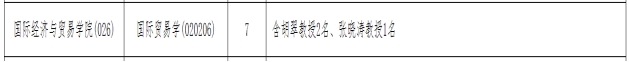 国际经济与贸易学院第二批次非定向就业招生7名(含胡翠教授2名,张晓涛教授1名)。