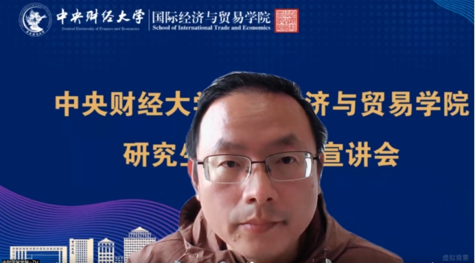 张晓涛院长介绍了学院历史、学科建设、人才培养和就业优势等方面情况。他强调,国际经济与贸易学院硕士生培养依托学校应用经济学一流学科群,对标境内外一流院校,具有中财特色,在国内外具有良好的知名度与美誉度。学院承担学校应用经济学一流学科主干领域“新发展格局中的开放型经济理论与政策”建设任务,取得丰硕成果;学院三个本科专业在软科排名中均获评A+。学院毕业生在金融机构、央企、国家部委等经济、管理领域表现优异。针对当前经济社会对国际经贸、国际商务人才需求的趋势,他指出,强国建设需要经济管理类高水平人才支撑,科技教育与人文社科教育协同发展共同助力经济社会高质量发展。谈及专业自信,张院长指出学院毕业生在人才市场上与顶尖高校学生同台竞争时表现突出,证明了专业培养成效。张院长寄语青年学子,面对全球经贸变革,要立足世界格局,聚焦中国发展,胸怀“国之大者”,增加定力,下决心肯吃苦,努力成长为“懂中国国情、通国际规则、具全球视野”的经贸栋梁。