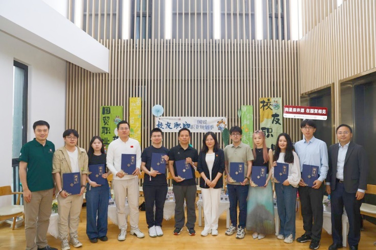 学院聘请校友杨灿秋、卢昭明、许旖珊、李传仁、高仁尚、李佳琪、龚艺、余纪磊为 “青桐引路人”校友导师,聘请嘉宾李壮为 “金石引路人”行业导师。学院党委书记徐淼、职业发展中心主任刘悦教授、贸易经济学系系主任纪珽副教授为校友和嘉宾颁发证书。受聘导师将在今后深入支持在校生职业与生涯发展。