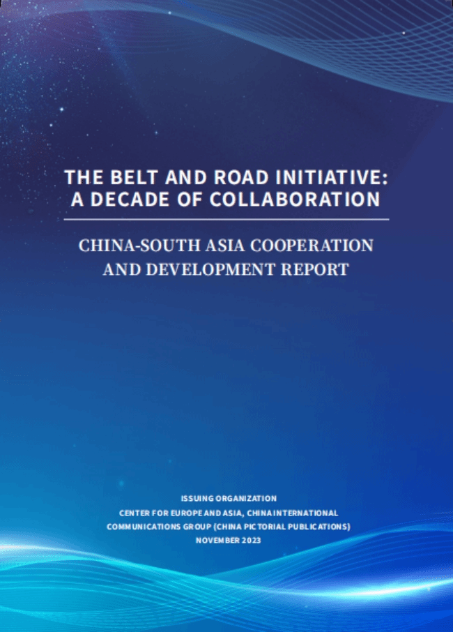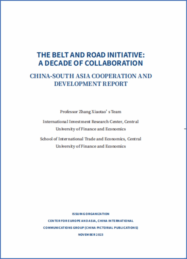 作为论坛的重要成果,中央财经大学国际经济与贸易学院张晓涛教授团队编写的《中国与南亚国家合作发展报告》中英文版中国外文局综合业务部一级巡视员黄卫发布中国驻尼泊尔大使陈松为报告揭幕。本报告首先分析了 2013 至 2022 年间中国与南亚整体的进出口状况,然后分国别,从双边贸易、中国对其直接投资、工程承包和典型项目四个部分,展现中国与南亚八国在过去十年间通过经贸合作取得的非凡成就。报告总结了“一带一路” 倡议提出以来中国与南亚各国在经贸合作、经济发展取得的一系列成果及其对各国减贫脱贫效应。报告指出,面向未来,中国将采取八项行动支持高质量共建“一带一路”, 这些合作必将为南亚地区减贫脱贫, 促进地区的繁荣发展作出新的贡献
