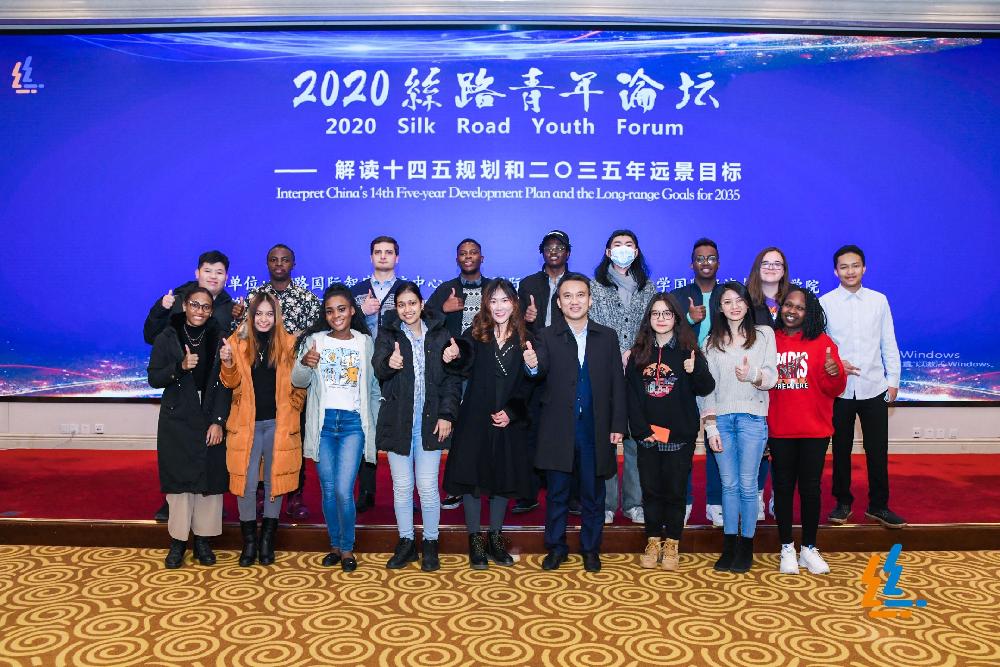 2020年12月20日下午,“2020丝路青年论坛”在北京隆重举行。本次论坛由丝路国际智库交流中心、中国国际商会、中央财经大学国际经济与贸易学院主办,丝路百科杂志社、丝路会展服务有限公司承办,中国建筑集团有限公司、泸州老窖股份有限公司、北京物联网智能技术应用协会协办。本次论坛是国际经济与贸易学院落实“不忘初心、牢记使命”主题教育成果,加强面向现实重大问题的科研成果转化与交流,扩大和国内知名智库之间的交流与合作重要举措之一。论坛以解读“十四五”发展规划和2035远景目标高质量推进“一带一路”建设促进国内和国际双循环经济发展为主题。来自全球的研究学者、驻华使节、“一带一路”国家青年代表、青年企业家等共150多人出席活动。作为论坛主办方之一,我院党委书记徐淼,国际合作办公室闫倩楠以及国际经济与贸易学院16位本科、硕士留学生应邀参加了此次论坛,与会留学生来自菲律宾、委内瑞拉、马达加斯加、波兰、亚美尼亚、萨摩亚、布隆迪、所罗门群岛、津巴布韦等十多个国家