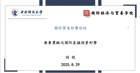 刘 悦(中央财经大学国际经济与贸易学院教授)做了题为《要素禀赋与国际直接投资形势》的专题报告: