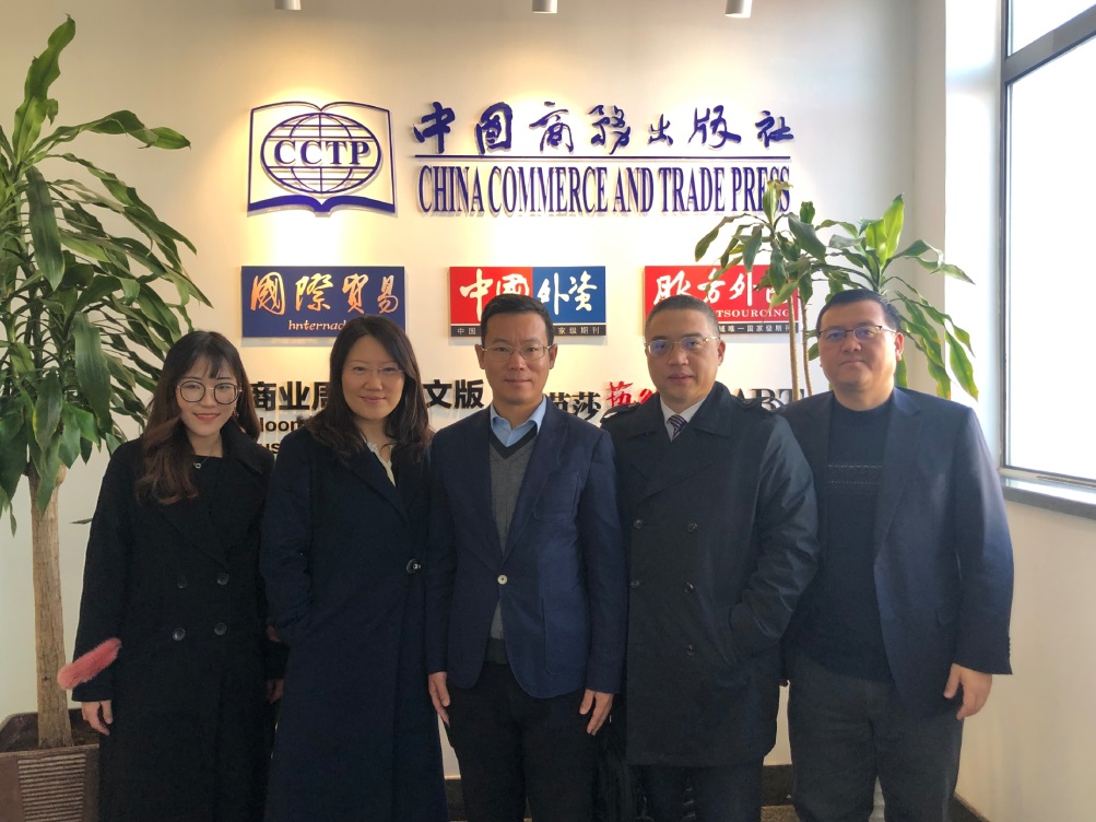 为了进一步落实“不忘初心、牢记使命”有关整改事项,2019年12月5日上午,我院院长张晓涛,院党委书记徐淼以及国际合作办公室闫倩楠一行三人赴商务部国际贸易经济合作研究院开展合作调研,受到中国商务出版社社长兼中商智库执行理事长郭周明、中商智库秘书长兼首席研究员李建军、《中国外资》和《服务外包》杂志社社长李自满以及中国商务出版社政府事务部主任兼中商智库副秘书长刘静知的热情接待。