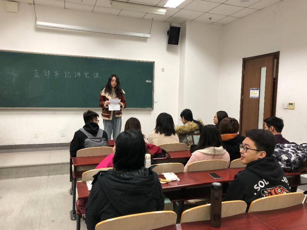 2019年11月12日上午,国际经济与贸易学院国际商务硕士党支部在主教208教室开展了“新时代青年的担当”主题党课,党支部书记李季莲从青年在新时代的重要地位、新时代赋予青年的使命、新时代青年的责任三个角度,和大家分享了自己的心得体会。