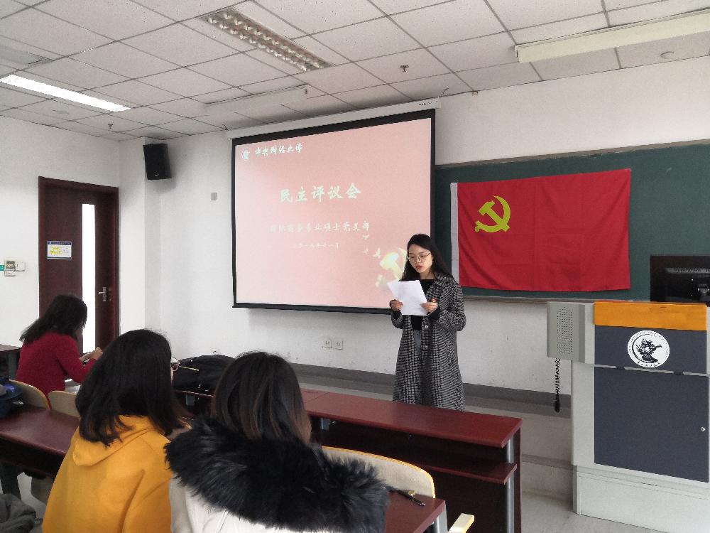 2019年11月26日,在国际经济与贸易学院党委统一部署下,国际商务硕士党支部在全体党员中深入开展了“不忘初心、牢记使命”主题教育。学院副院长李瑞琴老师到场参加。党支部学党章、重温入党誓词,再望奋斗历程,重新检视自身存在的问题,坚定党和人民事业奋斗到底的决心推进主题教育的深入开展,通过精心组织,扎实推进,认真做好各阶段工作,圆满地完成了活动各项内容,取得了一定实效。