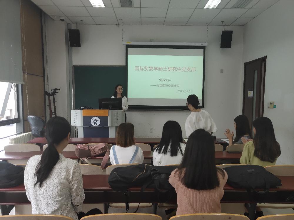2019年9月21日,国际贸易学硕士研究生党支部在沙河东区主教楼303教室召开了党员大会。