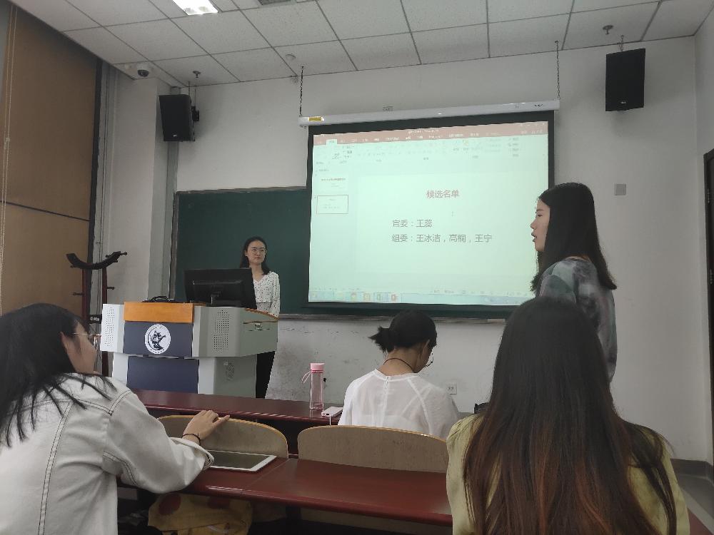 会议第三项,举行支部委员换届会议,主持人为书记闫琴娥,监票人为余雨缘,计票人为李晋芳。支部书记闫琴娥公布候选名单,候选人王冰洁、王蕊、高桐、王宁依次进行竞选发言。4名候选人发言结束后,会议采取无记名投票的方式进行表决,每位有选举权的正式党员有一张选票,只能选2人,多选或少选的选票作废,不选视作弃权。