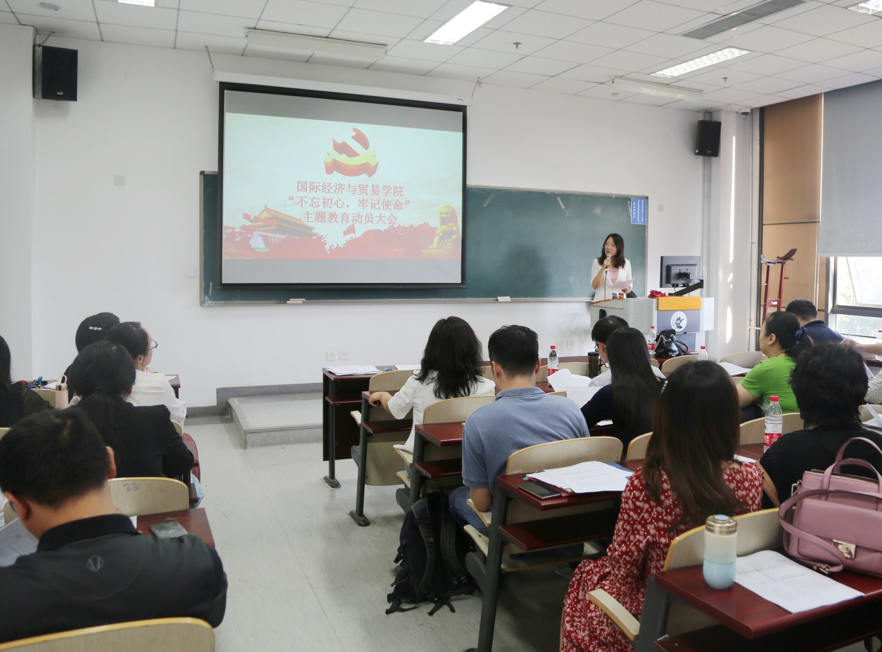 根据党中央、教育部党组部署及9月18日我校开展的“不忘初心、牢记使命”主题教育动员大会精神,2019年9月25日下午,国际经济与贸易学院党委在沙河东区主教408召开学院“不忘初心、牢记使命”主题教育动员大会,国贸学院全体教师党员和部分学生党员参加会议。院党委书记徐淼从为什么、学什么、怎么学三个方面对我院落实主题教育进行动员部署和具体安排,并对主题教育提出要求和希望。