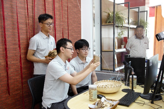 7月25日下午,国际经济与贸易学院副教授周世民,中央财经大学挂职干部、玉岗村驻村第一书记于来老师调研团队一行到达宕昌县红盛药源公司线下直播间,在相关平台开展电商直播带货活动。
