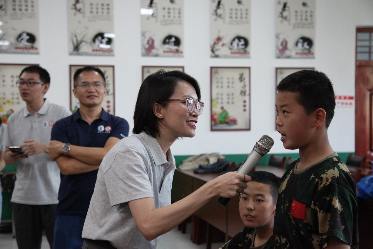 调研团队来到训练营报告厅,与参加夏令营的孩子们展开热烈交流。来自越南的两位留学生向孩子们分享自己来到中国求学的故事,教给孩子们一些简单的问候词语。随后,队员们将知识科普与趣味问答的形式相结合,开展了长征历史为主题的红色教育讲座,引导学生感悟长征精神。