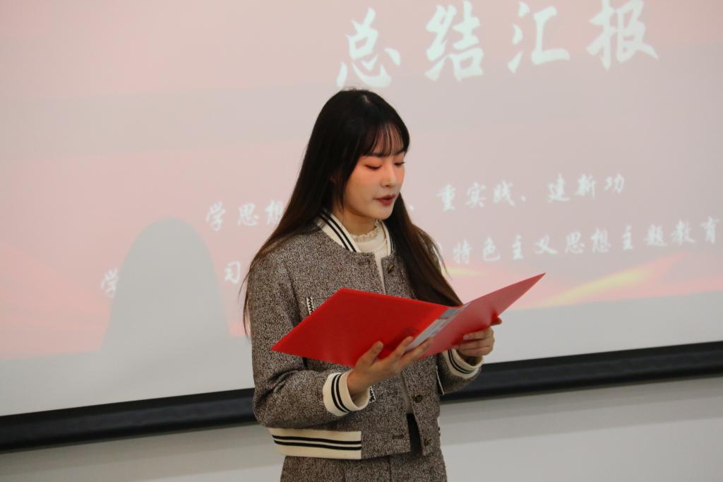 “红摇篮”学生党建工作基地主任文思琪为大家做“红摇篮”党建工作基地工作总结。她介绍到,自2019年10月以来,在院党委的领导下,“红摇篮”党建工作基地开展一系列“走心又走新”的多样化活动,从“北大红楼”故事分享会到“觉醒年代”手抄报制作,从雷锋精神我想说到“爱国诗歌”我来写,从“礼敬传统文化”的研读吟诵到“我和我的冬奥志愿”传承弘扬,实现了教育多元化、学习创新化。正是在这些活动的组织和实践中,不断积累和总结,探索出了大中小合作共建的新路径。她表示 “红摇篮”党建工作基地将继续秉承“传承红色基因,淬炼经贸精英”的理念,基地成员将努力做勇担时代责任、树立世界眼光、传递中国力量的国经贸进步青年。