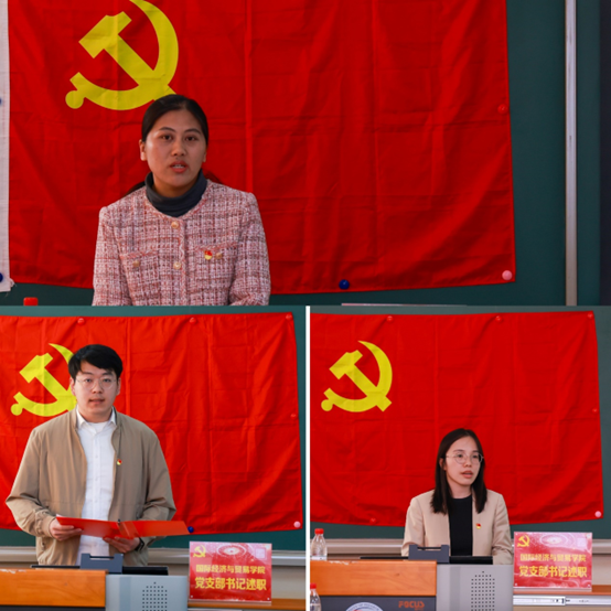 中澳项目第一本科生党支部书记邱小花、中澳项目第三本科生党支部书记徐莉、国际经济与贸易专业本科生党支部书记侯思宇、国际商务和贸易经济专业本科生党支部书记施立萍、国际贸易学硕士研究生党支部书记刘天宇、国际商务专业硕士研究生党支部书记赵天舒、国际贸易系教工党支部书记梅冬州、贸易经济系教工党支部书记纪珽等8位党支部书记进行了书面述职。在书面述职汇报中,8位党支部书记就提升政治素养、完善政治制度、夯实党建基层、创新学习形式、推进联学共建、树立支部品牌等方面对支部2023年党建工作进行了系统性的回顾与总结,同时针对工作中存在的短板提出了切实可行的改进措施。